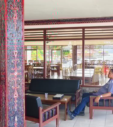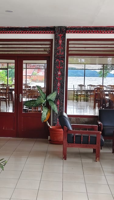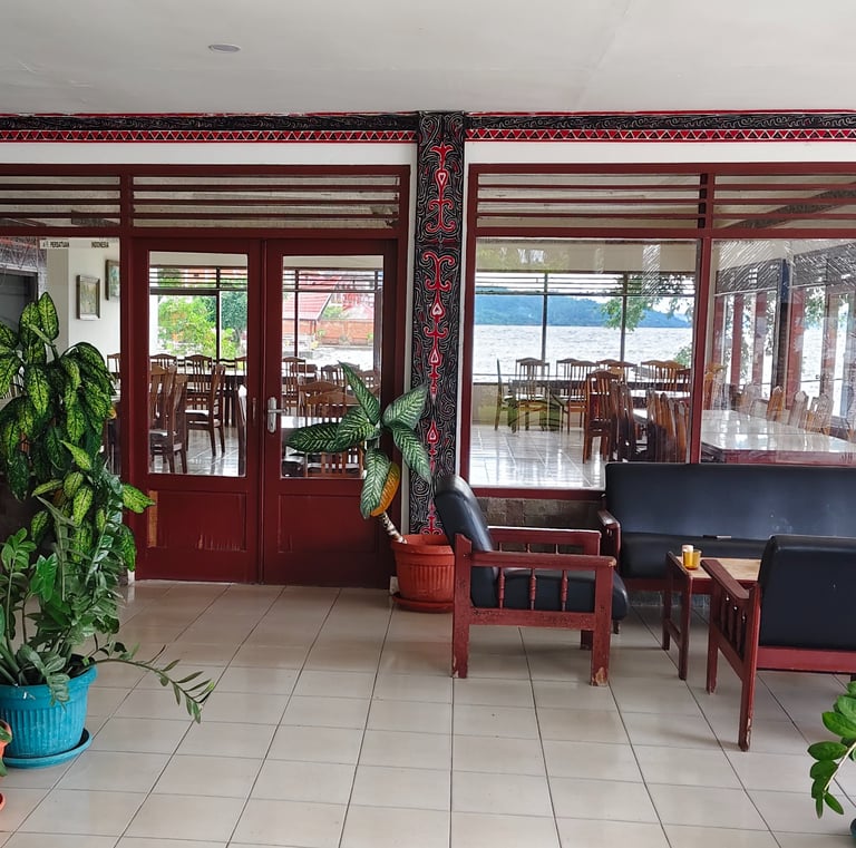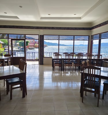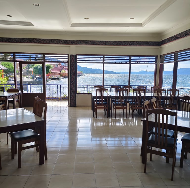 Nikmati hidangan lezat di tepi Danau Toba, suasana yang nyaman dan menyenangkan.